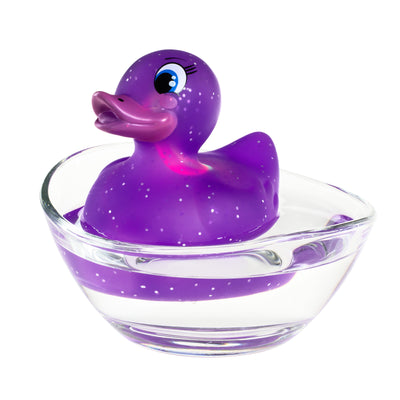Natürlich kann diese Ente aber ein bisschen mehr als ihre gelben Artgenossen. Vor allen Dingen glitzert sie! Keine Sorge, der Glitter geht nicht beim ersten Bad ab, sondern ist im Gummi selbst. Noch besser aber ist, dass die Ente leuchtet, sobald ihre "Füße" (wir stellen uns vor, sie hätte welche) das Wasser berühren. Solange sie schwimmt, leuchtet sie in einem Farbwechsel von grün-blau-pink. Sehr beruhigend und in einem schummrigen Badezimmer besonders episch. ;)