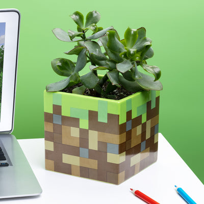 De meest iconische van alle bouwstenen kun je nu in de vorm van de Minecraft Grasblok Bloempot mee naar huis nemen. Zoals bijna alles in het spel is hij veelzijdig inzetbaar en kan hij gevuld worden met planten of pennen - of met wat je verder nog kunt bedenken.