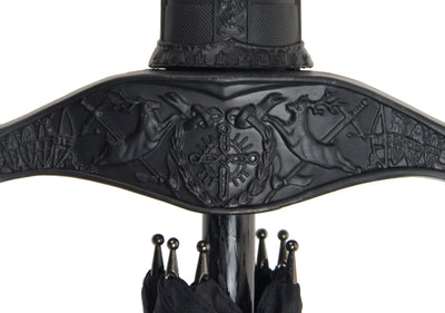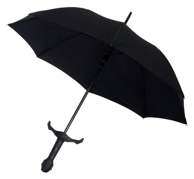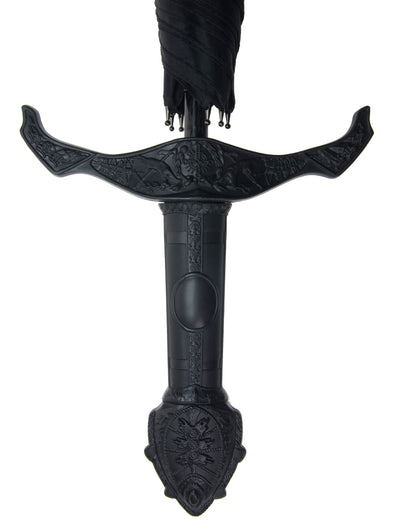 De Ridderzwaard Paraplu is een zwarte stokparaplu, waarvan het extra lange handvat eruitziet als dat van een ridderzwaard. De Ridderzwaard Paraplu is van zeer hoge kwaliteit en bestaat uit stevig plastic, metaal en stof. Direct boven het handvat bevindt zich een knop waarmee je de paraplu automatisch kunt openen.