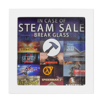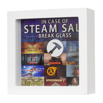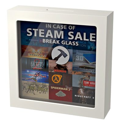 Damit Du für den nächsten Angriff der absoluten Sparpreise bestens gewappnet bist, gibt es die Spardose für den Steam Sale. Diese Spardose aus Holz erfüllt nämlich genau einen Zweck: Sie soll Dir beim Sparen helfen, damit Du Dir noch mehr Computerspiele holen kannst! Im Inneren der Spardose findest Du lauter Spiele-Cover, die von bekannten Spielereihen inspiriert wurden, z.B. FIFA 1904 oder Pong 3D. Es muss ja niemand wissen, dass Du bereits einen Pile of Shame in Deinem Account hast, der gefühlt höher als der Eiffelturm ist…