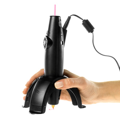 Zum einen dient der Standfuß als ganz normaler Ständer zum Aufbewahren. Du musst Deinen 3Doodler also nicht mehr unordentlich herumrollen lassen. ;)