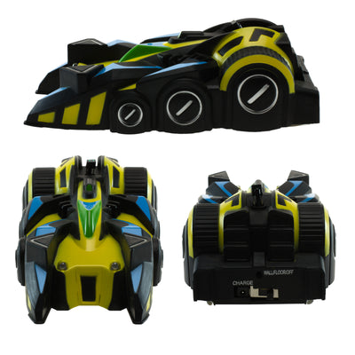 Das Anti-Gravitations Auto verfügt über eine Vorrichtung, die an der Unterseite des Fahrzeugs einen Unterdruck produziert, so dass es sich an allen glatten Oberflächen quasi festsaugen kann. Dadurch wird es möglich, das Fahrzeug beispielsweise am Fenster, der Wand oder gar an der Decke fahren zu lassen. Das Fahrzeug verfügt über eine Infrarot-Fernsteuerung, mit der man es ganz einfach Fernsteuern und auch Aufladen kann. Zusätzliches Gimmick: Das Auto verfügt über 4 kleine LED-Scheinwerfer, die automatisch je nach Fahrtrichtung leuchten.