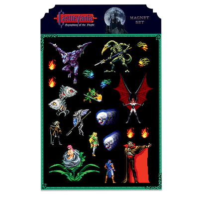 Ultimativ nostalgisch wird’s bei deiner Kurzreise zum Kühlschrank ab jetzt mit dem Castlevania 8-Bit Kühlschrankmagnet-Set. Alle zentralen Elemente aus dem Kult-Spiel von 1986 findest du hier als urige Kühlschrankmagneten, vom Spielcharakter Simon Belmont über den fiesen Graf Dracula bis hin zu den rostroten Mauersteinen, auf denen du dir deinen Weg durch das Schloss bahnst. Dem Castlevania-Nachfolger Symphony of the Night ist ein weiteres Set mit verschiedenen Charakteren, Gegnern und Items aus dem 1997er Spiel gewidmet.