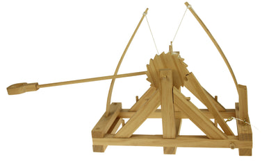 Mit diesem Bausatz lernst Du die kriegerische Seite des Universalgenies Leonardo da Vinci kennen. Tatsächlich beherrschte dieser nicht nur Malerei und Bronzeguss, sondern tüftelte auch an allerlei Maschinen, darunter dieses Katapult zum Zerschmettern von Feinden.