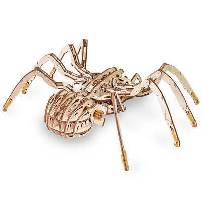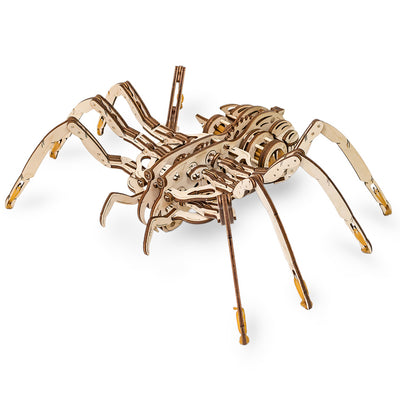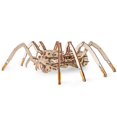 Der Eco-Wood-Art Holzbausatz „Kinetische Spinne“ lässt Dich aus lasergeschnittenen Holzteilen eine überlebensgroße Spinne bauen, die anschließend sogar durch die Gegend krabbeln kann! Sobald Du die Spinne fertig zusammengebaut hast, kannst Du sie aufziehen und vorsichtig auf den Boden setzen. Anschließend wird Dein achtbeiniger Freund in Windeseile losdüsen!