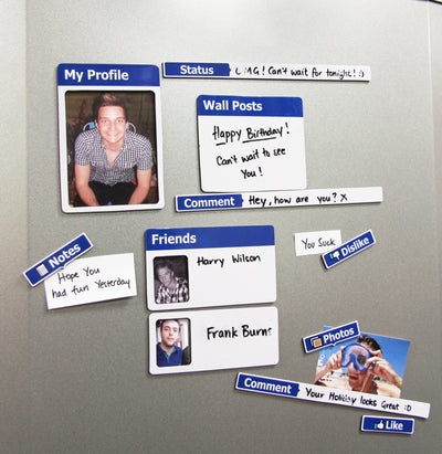 Wenn die Kommunikation zu Hause, in der WG oder auf Arbeit vor allem über das Internet oder gar über eine undurchsichtige Zettelwirtschaft stattfindet, dann sind die Facebook Kühlschrankmagnete genau das Richtige für Dich.