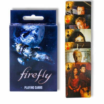 Natürlich ist zwischendurch auch Zeit zum Karten spielen. Dafür eignen sich die „Firefly“ Spielkarten geradezu perfekt. Mit den 54 Karten inklusive 2 Jokern kannst du mit deinen Mitreisenden selbst an den langweiligsten Tagen etwas Spaß haben. Außerdem sind auf den höchsten Karten und Jokern die Gesichter aller Crewmitglieder abgedruckt. So kannst du dir vielleicht besser merken, auf wessen Seite du stehst, wenn wir mal wieder Schwierigkeiten mit der Allianz kriegen, von Reavern überfallen werden oder in sonstiges Schlamassel geraten.
