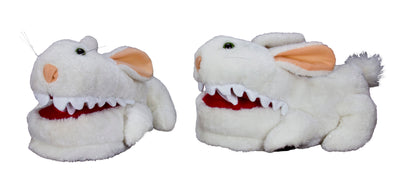 Die riesigen und großen Zähne finden sich auch auf diesen Hausschuhen wieder. Wenn Du mit den Killerkarnickel Hausschuhen umherläufst, öffnet und schließt sich das gierige Maul und verbreitet Angst und Schrecken. Falls Du mal einem richtigen Killerkaninchen begegnest, wird dieses ganz schnell wieder umdrehen, sobald es sieht, dass Du zwei seiner Freunde schon an den Füßen trägst.
