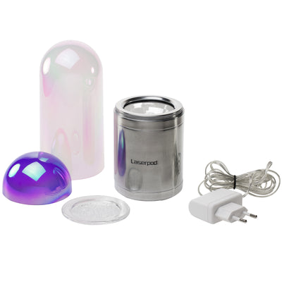 Der Laserpod Galaxy ist ein kleines formschönes Gerät, welches mit Hilfe von Lasern, Leuchtdioden und neuester Optik-Technologie gigantische Lichteffekte an die Wände projiziert. So kann man den Raum mit bewegenden Sternenhimmeln, abstrakten Laserwolken oder vielen anderen, faszinierenden Figuren erfüllen. Zusätzlich kann der Laserpod mit den mitgelieferten Aufsätzen (Glass-Reflektor-Linse und zwei sogenannte Diffusoren) als besondere Umgebungsleuchte genutzt werden, die Ruhe und Gemütlichkeit ausstrahlt. Die Effekte werde mit Hilfe von Lasern und farbigen Leuchtdioden erzeugt, deren Strahlen in einem Kristall gebrochen werden.
