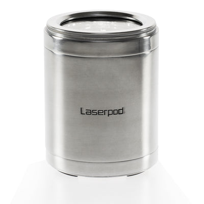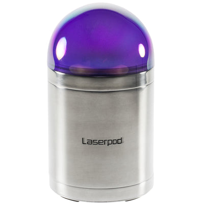 Maße des Laserpods: ca. 10 bis 27 cm hoch (je nach Aufsatz). Der Laserpod kann mit dem mitgelieferten Netzteil oder 3 AA Batterien betrieben werden. Das Gehäuse des Laserpods ist aus Edelstahl.