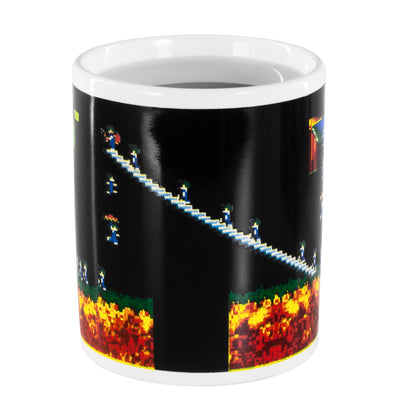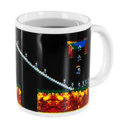 Trister Arbeitsalltag kann durchaus dazu führen, dass man sich selbst wie ein Lemming fühlt. Ein Zahnrad im Getriebe für einen höheren Zweck, damit irgendjemand da oben zum Ziel kommt. Allerdings gibt es auch das altbewährte Mittel gegen die totale Stumpfheit: Kaffee gibt uns bekanntermaßen neue Energie für eine weitere Runde vor dem Computer oder wo immer Du Deine Zeit totschlägst. :) Das gilt auch für die Lemmings auf diesem Becher. Sobald Du ihn mit einem heißen Getränk füllst, bevölkern sie das aufgedruckte Level. Dabei hast Du nicht einmal den Stress, die Lemmings im richtigen Moment zum Blockierer oder Fallschirmspringer zu machen, das haben sie zum Glück schon erledigt. Das perfekte bestandene Level. Auf jeden Fall motivierend für die nächsten Stunden im Büro. ;)