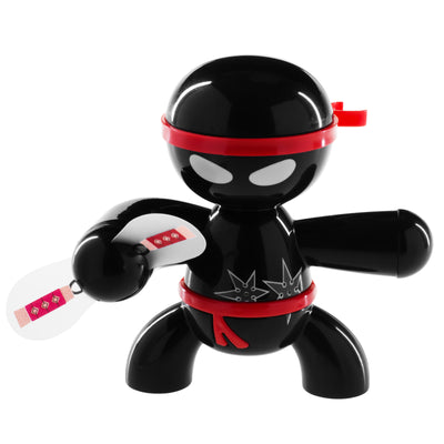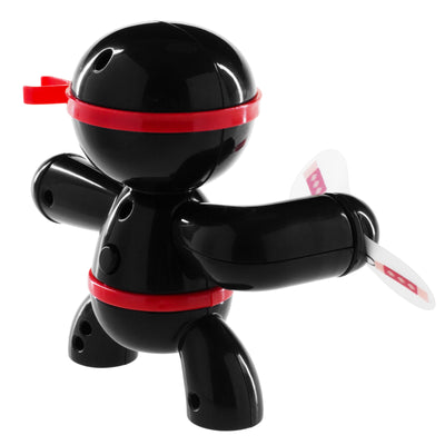 Du musst übrigens keine Angst haben, dieser Kämpfer ist wirklich loyal und die Wurfsterne an seinem Gürtel kommen nie zum Einsatz. Selbst wenn Du aus Versehen einmal in den Ventilator gerätst, wirst Du nicht verletzt, denn die Rotorblätter sind aus weichem Gummi, das sofort nachgibt. So sind weder Finger noch Papiere in Gefahr. :)
