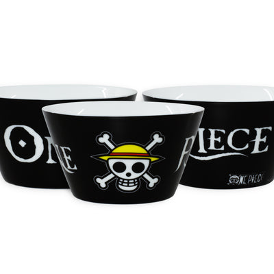 Es dürfte also niemanden überraschen, dass anständige Piraten auch am Frühstückstisch kräftig zulangen. Um die mächtigen Müsliberge zu halten benötigt man ein angemessenes Gefäß: die One Piece Schüsseln! In diesen rundum bedruckten Keramikschüsseln schmeckt die (angeblich) wichtigste Mahlzeit des Tages gleich doppelt so gut. ;)