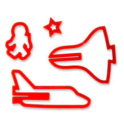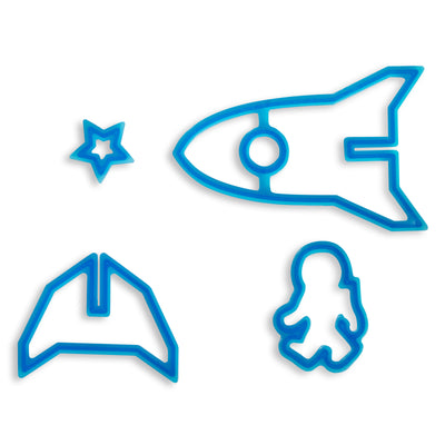 • Ausstechformen für die Bauteile eines Raumschiffs samt Pilot.