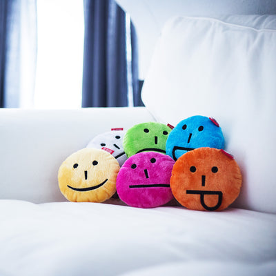 Die Kissen kommen als Set von je 6 Smileys und jedes Kissen hat einen Durchmesser von 13,5cm.