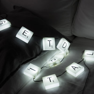 • Lichterkette im Design von zehn 6 cm x 6 cm großen Scrabble-Steinen