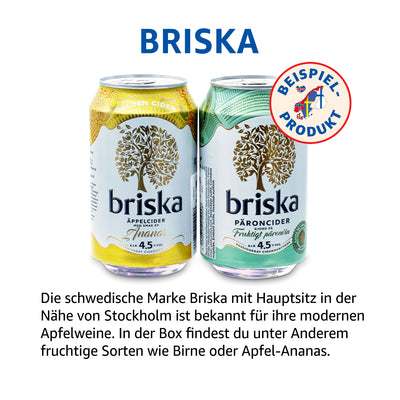 In dieser Box findest du 12 verschiedene, zufällig zusammengestellte Sorten aus mehreren skandinavischen Ländern, darunter beispielsweise die Marken Cult, Somersby oder Rekorderlig. Da wir die Sorten zufällig für die Boxen auswählen, kann die Zusammenstellung variieren. Alle sind alkoholhaltig und können teilweise zusätzlich mit Koffein versetzt sein.