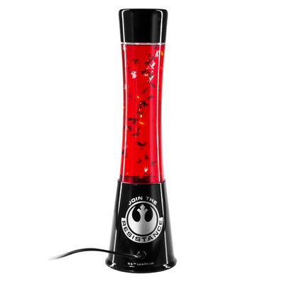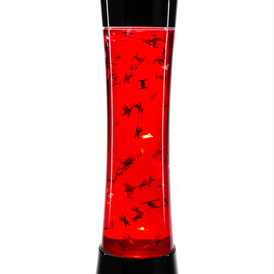 • Rote Glitterlampe mit zweidimensionalen Folien-Raumschiffen aus Star Wars Episode VII.