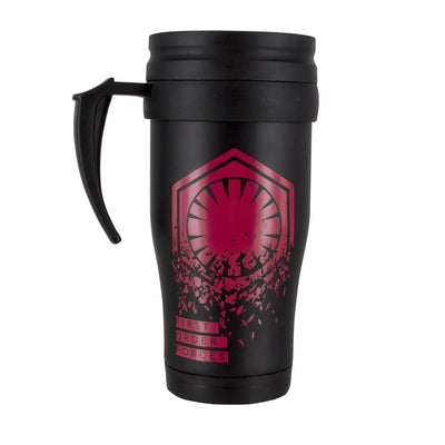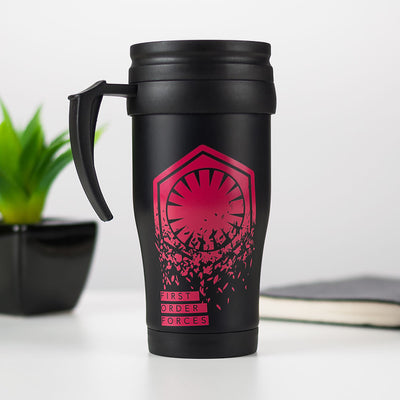 Mit der actionreichen Darstellung eines Prätorianers mit mandalorianischem Helm auf der einen und dem Abzeichen der Ersten Ordnung auf der anderen Seite, kannst Du hier auf jeden Fall deutlich zeigen, auf welcher Seite der Macht du stehst. Dank stabilem Henkel und Thermodeckel mit Auslaufschutz geht Dir auch in hitzigen Situationen, oder wenn Du plötzlich vor Snoke, Kylo Ren oder Armitage Hux salutieren musst, kein Tropfen Tee oder Kaffee daneben.