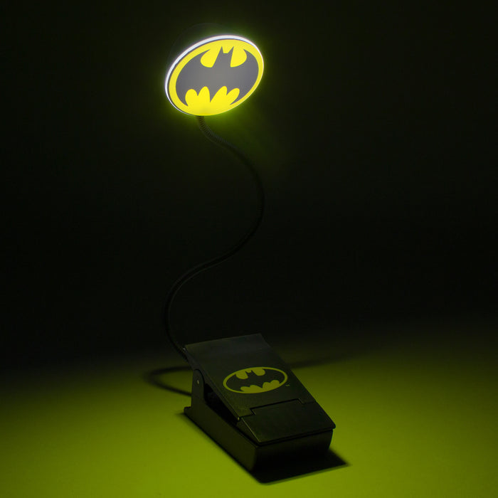 • Leselampe mit flexiblem Arm, die in Form des Bat-Signals leuchtet