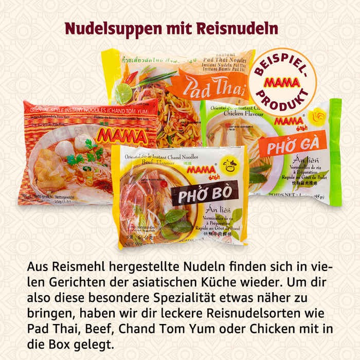 • Nudelbox mit 10 ausgewählten Sorten thailändischer Instant-Nudeln der Marke MAMA