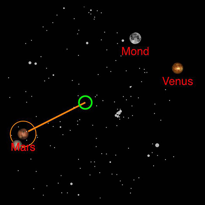 • Über Spiegel werden Informationen über Sternbilder und Co. über das Blickfeld auf den Nachthimmel gelegt